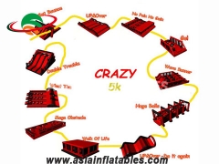 nflatable Obstacle Course 5k means that the total length of this kind of inflatable obstacle course is about 5 kilometers which is made up of a lot of fun obstacle courses, such as, inflatable slides, ball maze, bouncing balls, wave bridges, mattress runway, wrecking balls, rocking wall and some other obstacles. Each obstacle will give you a different challenge and fun, but please rest assured that you will enjoy all the obstacles. Ready to join your friends in challenging the inflatable obstacle course 5k? Trust me, all the participants will be crazy about it, so it usually be called insane inflatable 5k obstacles.